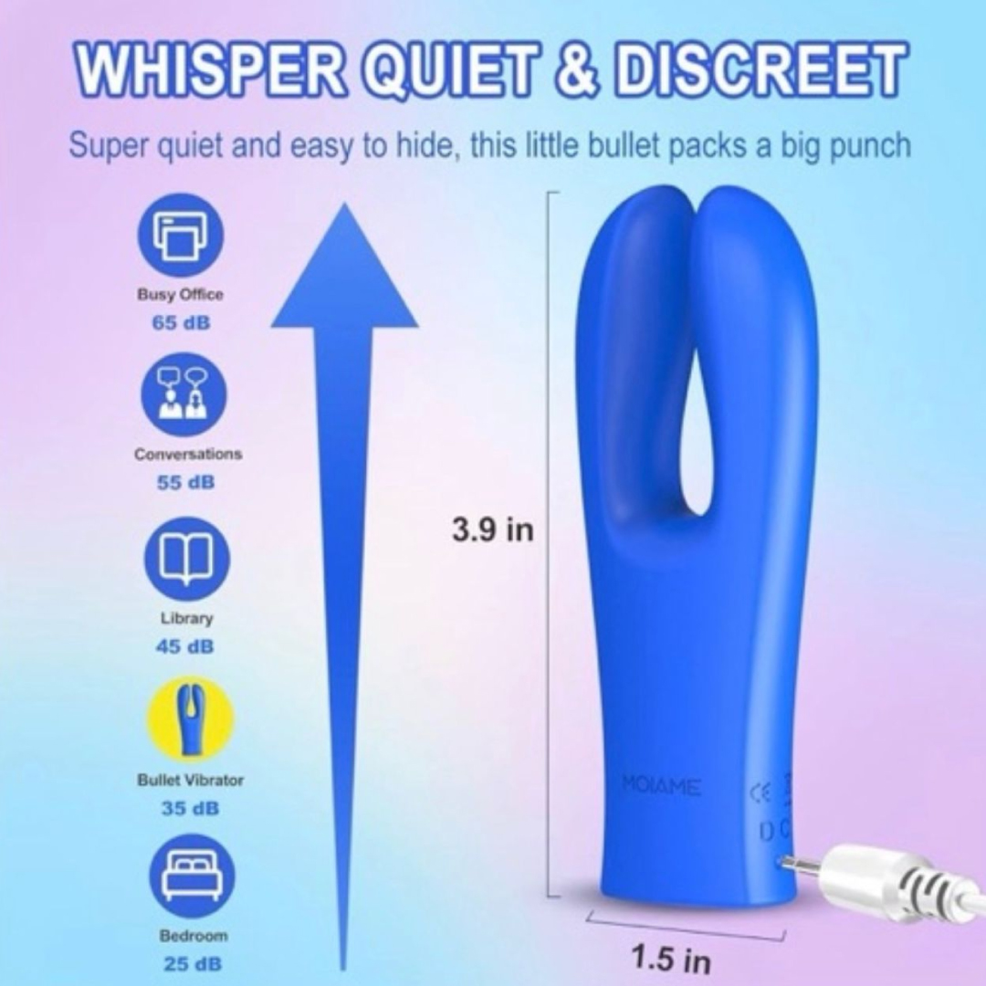 Dimensiones: 3.9 in x 1.5 in. Nivel de Ruido: Ultra silencioso (35 dB). Material: Silicona de grado médico, suave al tacto y segura para el cuerpo. |